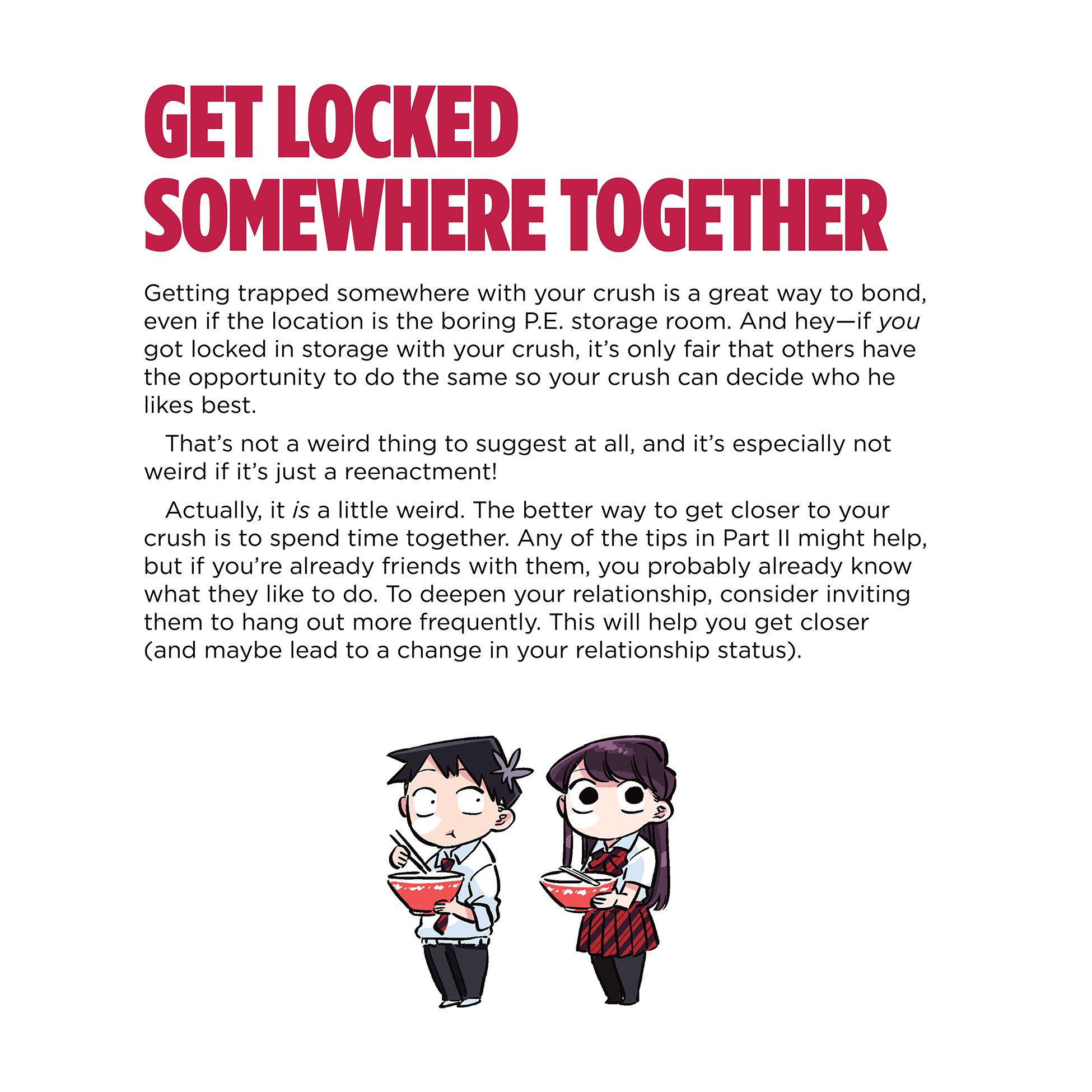 In the manga Komi Can’t Communicate, Komi attempts to overcome her social anxiety with the help of her very first friend, Tadano. This full-color book collects snippets of the practical advice, tips, and tricks Komi accumulates along the way, providing fun and useful pointers on meeting people, having conversations, and truly connecting so friendships can grow.